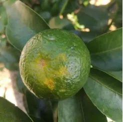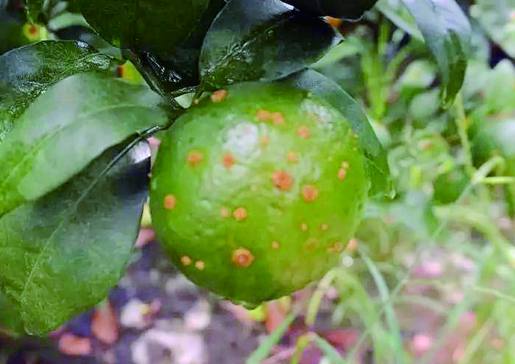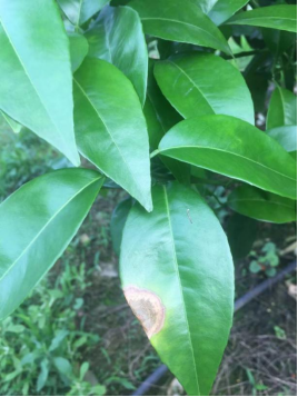 夏季雨后發(fā)生最多的病害,高溫高濕天氣和臺風暴雨后(果樹會出現(xiàn)大量傷口),病菌伺機侵入,主要危害植株的葉片和果實,防治不及時會造成柑橘大量出現(xiàn)落葉、枯梢、干枝、病果等問題,再加上柑橘潰瘍病具有爆發(fā)性強、傳播速度快、病害后果重的特點,容易發(fā)生惡性循環(huán)。現(xiàn)在要重點防控潰瘍病,預防雨后高溫大爆發(fā),還要防止?jié)儾∩瞎瑴p少對果實的影響。