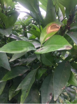 長期降雨的地方發(fā)病更重,降雨量越多則病情增長率就越高。在脂點黃斑病發(fā)生嚴重的果園內(nèi),常見大量積水,并伴隨漚根黃化的現(xiàn)象。持續(xù)降雨、洪澇災害等天氣狀況發(fā)生時,若果園缺乏良好的排水系統(tǒng),將大大提高脂點黃斑病的發(fā)生率。