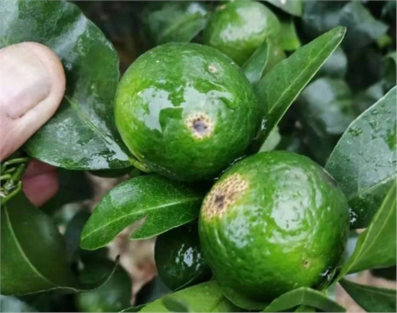 油斑病直接原因是油胞破裂,滲出的油脂對果皮造成傷害。冰雹、日灼、風(fēng)傷等天氣因素造成油胞破裂,使用堿性農(nóng)藥導(dǎo)致藥害,使油胞破裂。油胞多、油腺凸出的品種易感病。